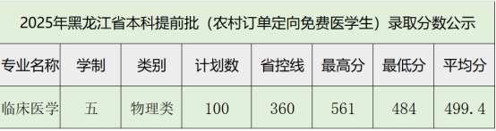 牡丹江医科大学2025年黑龙江省本科提前批(农村订单定向免费医学生)录取分数公示(按投档分数统计)