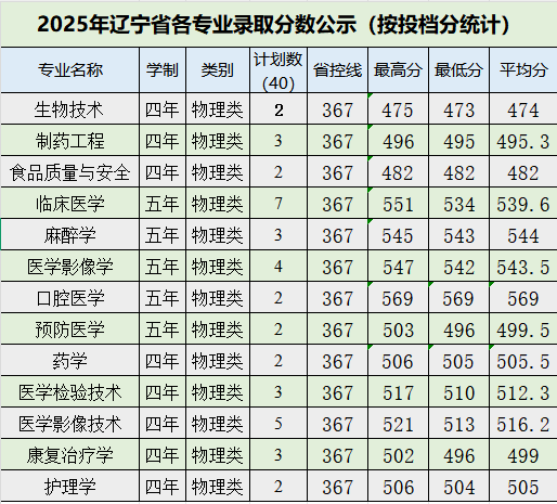 牡丹江医科大学2025年辽宁省各专业录取分数公示(按投档分统计)