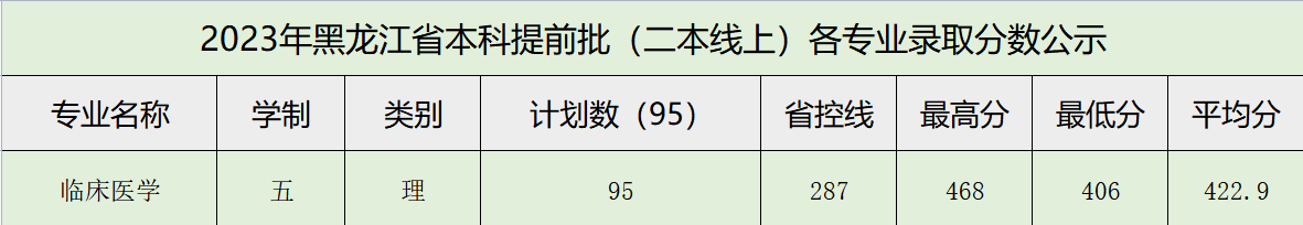牡丹江医学院2023年黑龙江省本科提前批录取分数公示