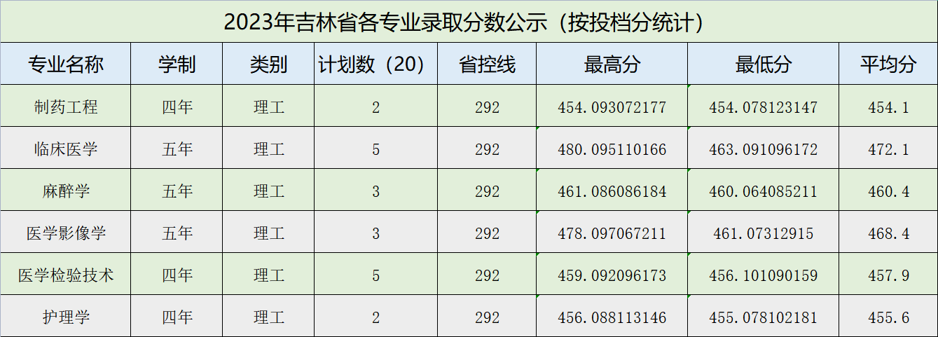 牡丹江医学院2023年吉林省各专业录取分数公示(按投档成绩)
