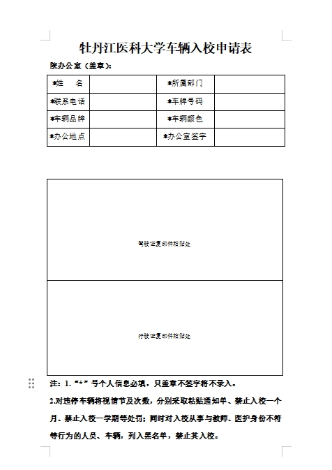 牡丹江医科大学个人入校车辆申请表(医院版).doc