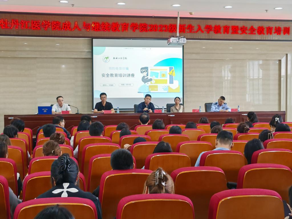 在这秋风送爽、硕果满枝的金秋时节,200余名新生满载憧憬与希望,齐聚牡医,即将在这座美丽的学术殿堂里展翅新篇章、筑梦新征程。9月19日上午成人与继续教育学院组织全体师生在技能实训中心17楼会议室隆重召开成人与继续教育学院2023级新生入学教育及安全教育讲座。成人与继续教育学院院长冯明磊、副院长李晶波、教务科科长曾奇、学生科科长吴岳达、保卫处防火科科长许海鹏参加了此次入学教育,会议由吴岳达主持。