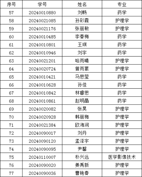 截至2024年5月6日,牡丹江医学院成人与继续教育学院2024级新生夏梓乔等77名同学,经学院多次电话咨询联系,77名同学明确表示放弃入学资格!