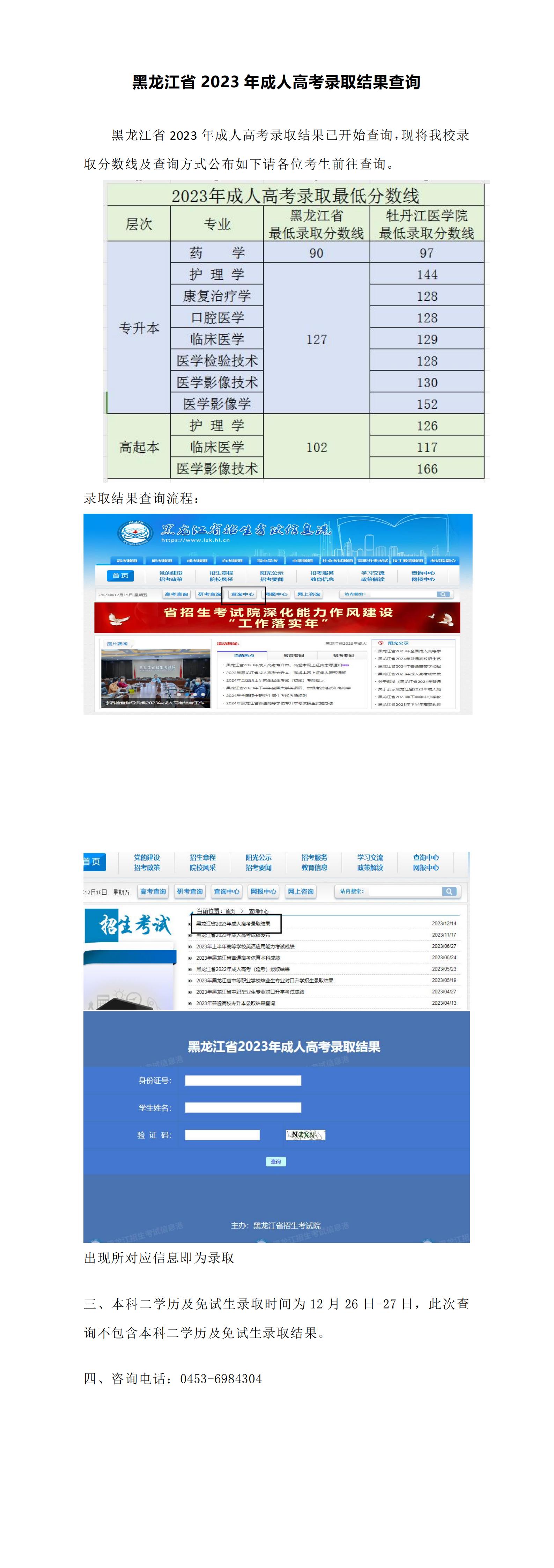 黑龙江省2023年成人高考录取结果查询
