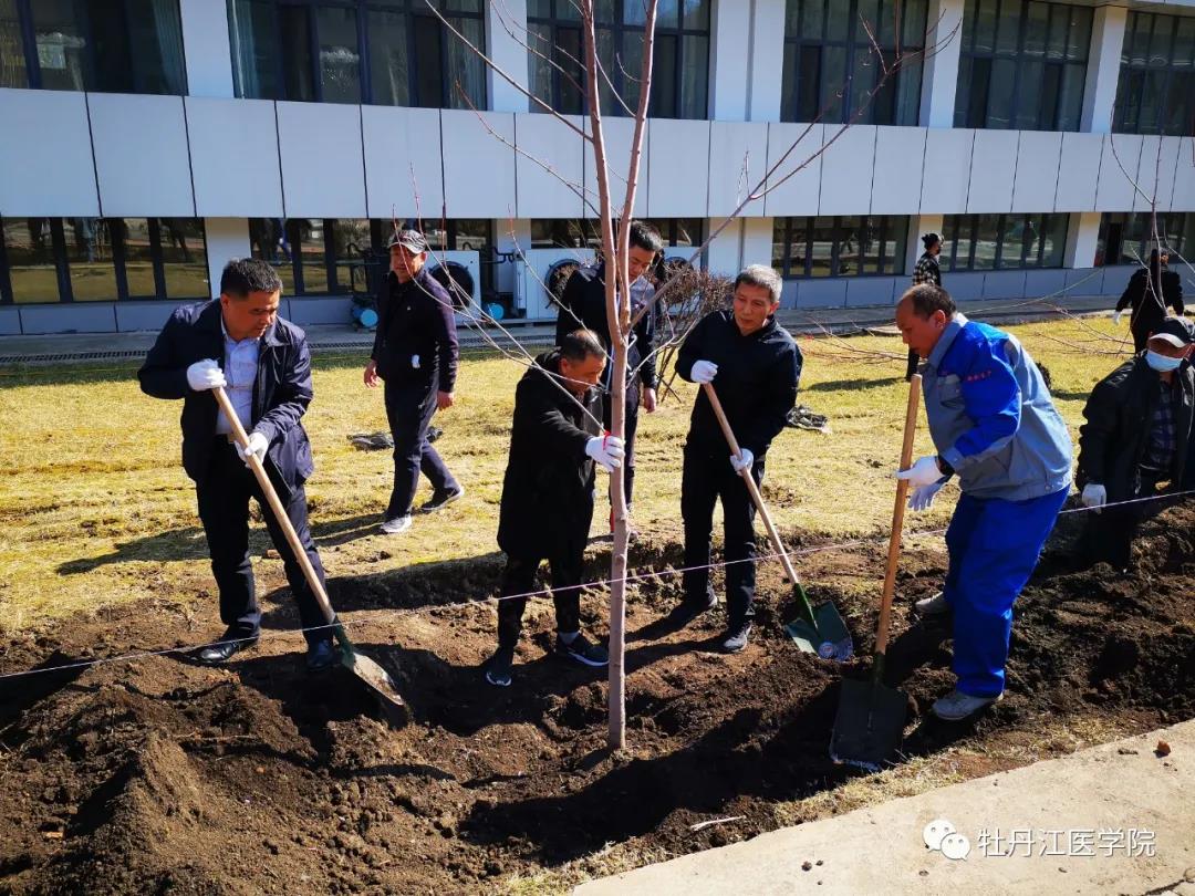 春风催新绿,植树正当时。后勤党总支全体党员在我校医学技能培训综合楼北侧绿地进行义务植树。在校园管理中心专业技术人员的指导下,分工明确,团结协作,挥锹铲土、放入树苗、培实新土、围堰浇水,每道工序都完成得一丝不苟。经过一个小时的努力,大家共种植红枫24 棵。