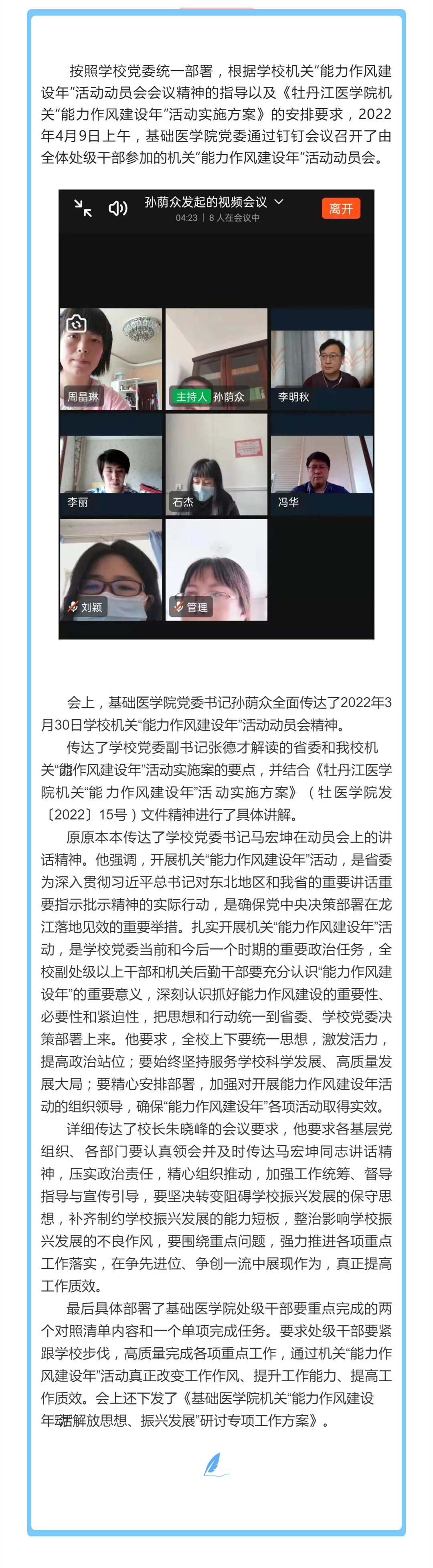 基础医学院召开机关“能力作风建设年”活动动员会