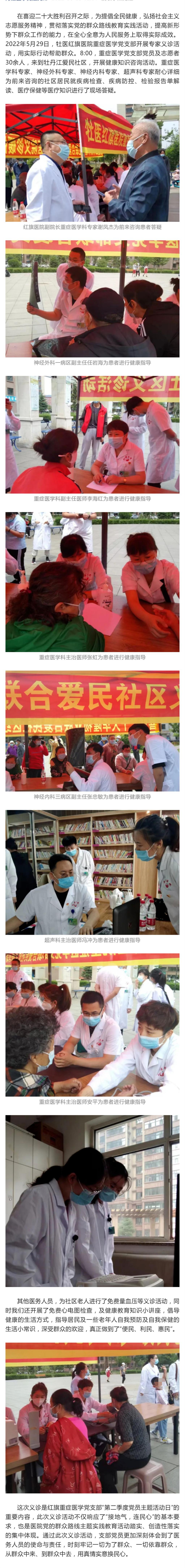 附属红旗医院党委重症医学党支部开展专家义诊活动