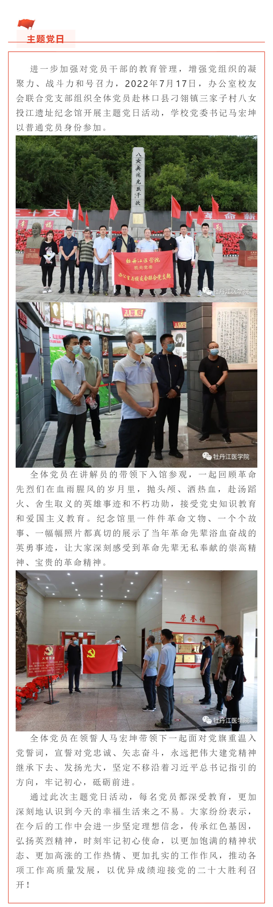 学校办公室校友会联合党支部到八女投江遗址纪念馆开展主题党日活动
