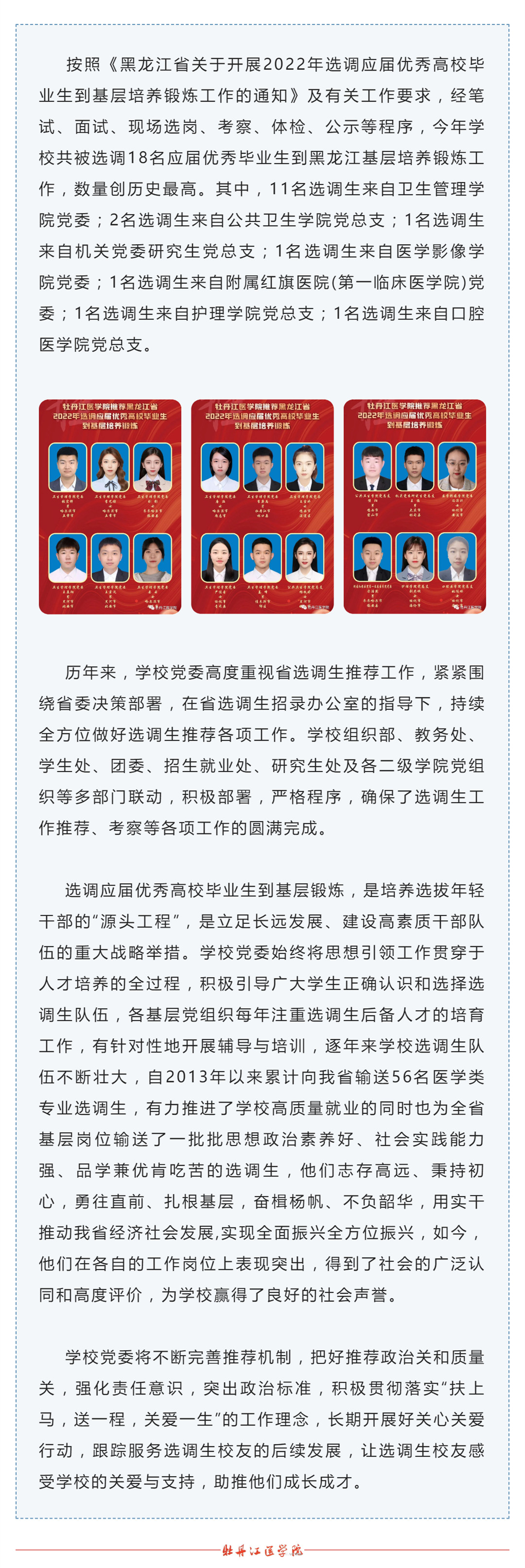 扎根基层、扬帆奋楫|学校18名选调生即将“医”路向前,服务龙江