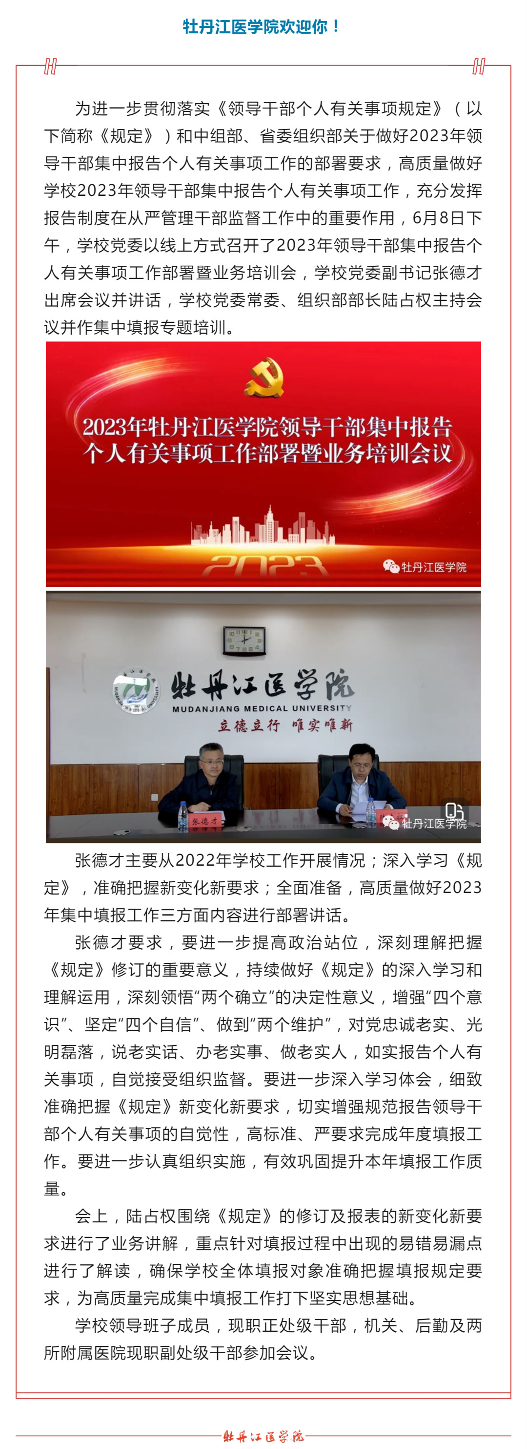 学校召开2023年领导干部集中报告个人有关事项工作部署暨业务培训会
