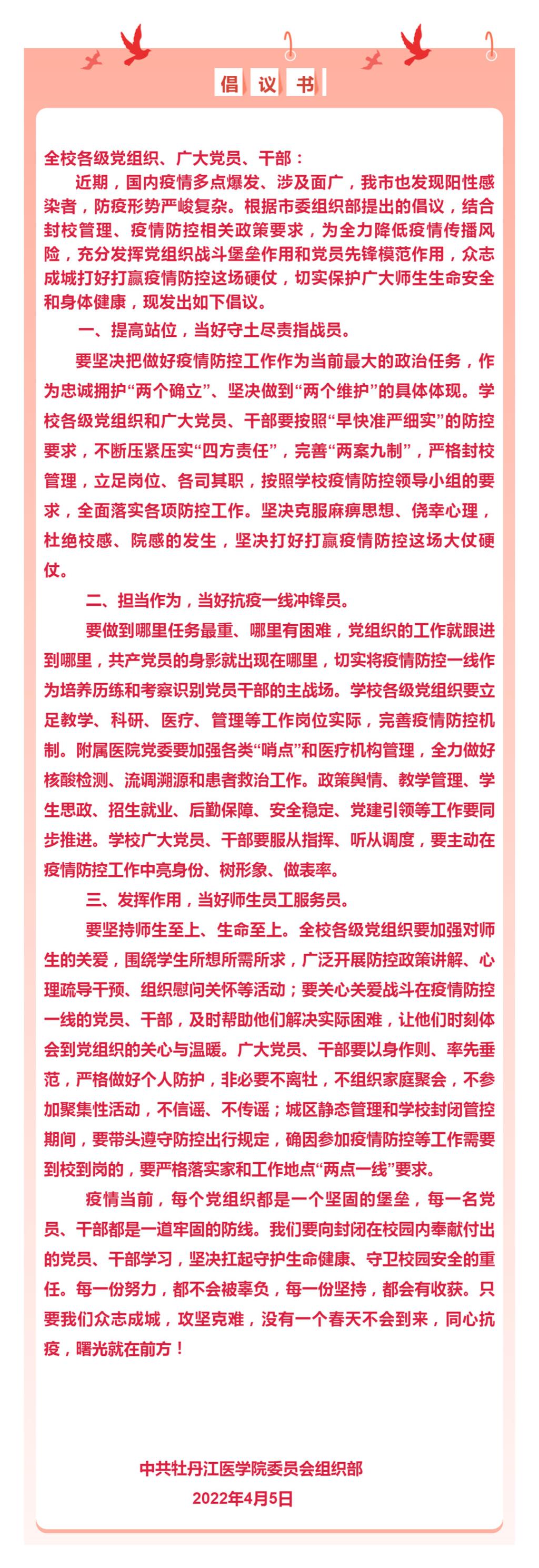 关于全校各级党组织和党员、干部“众志成城 共抗疫情”的倡议书