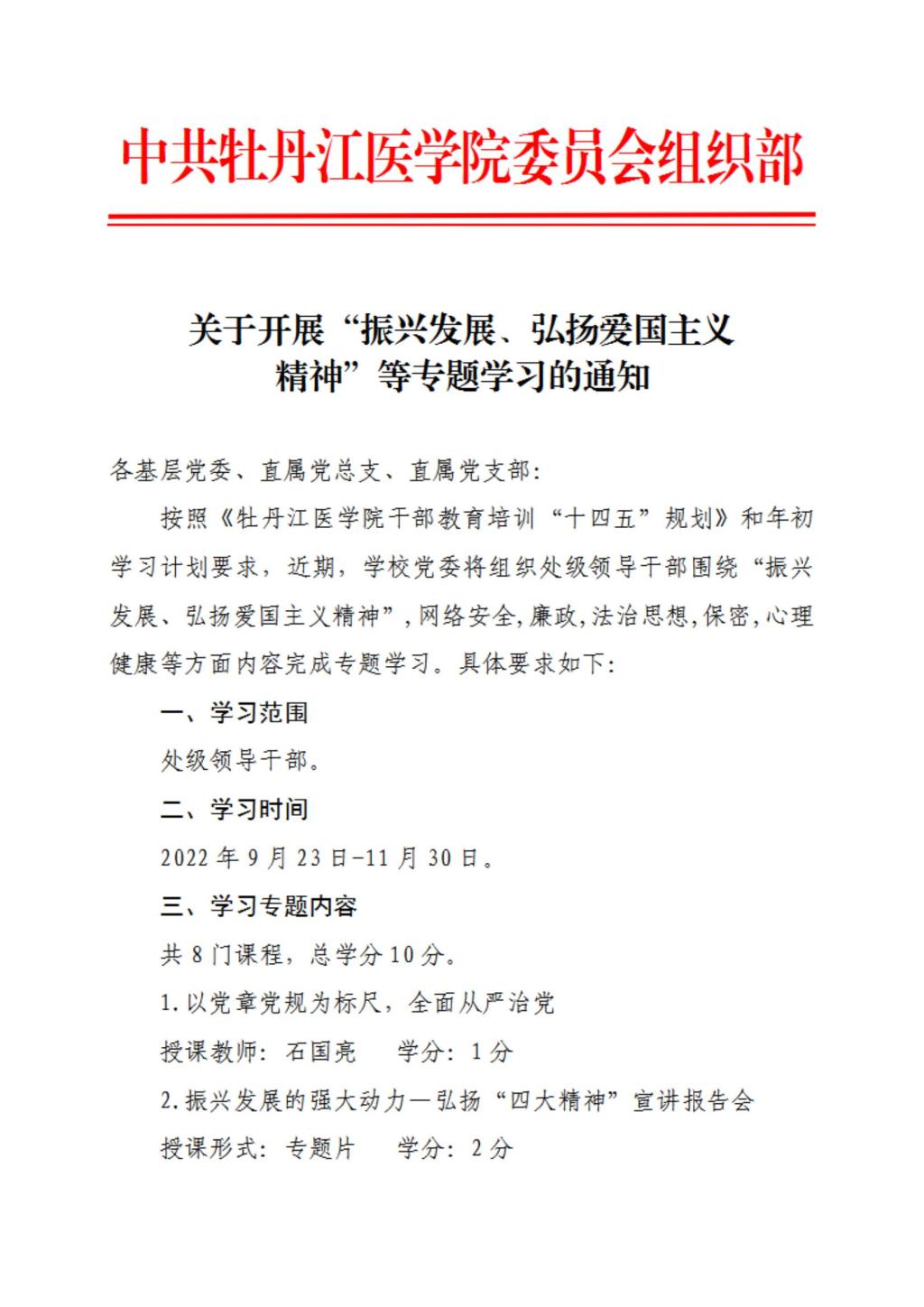 关于开展“振兴发展、弘扬爱国主义精神”等专题学习的通知
