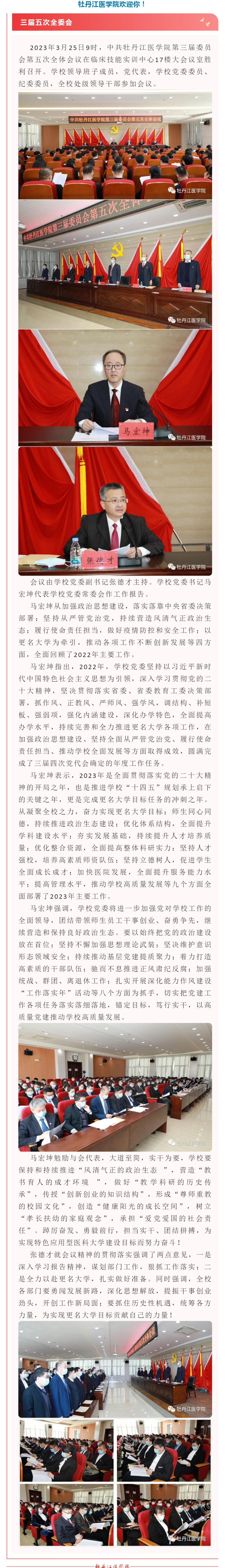 中共牡丹江医学院第三届委员会第五次全体会议胜利召开