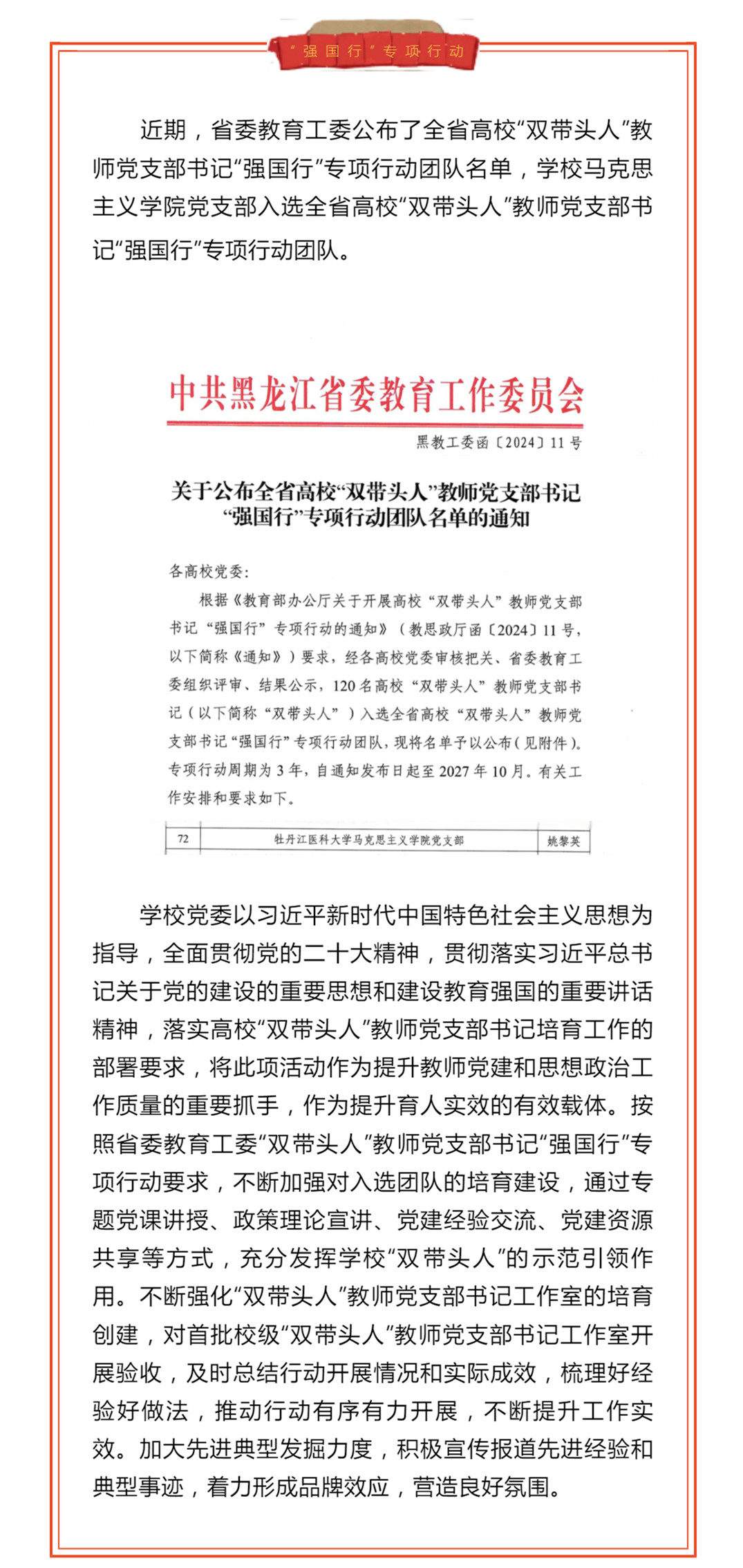 学校马克思主义学院党支部入选全省高校“双带头人”教师党支部书记“强国行”专项行动团队
