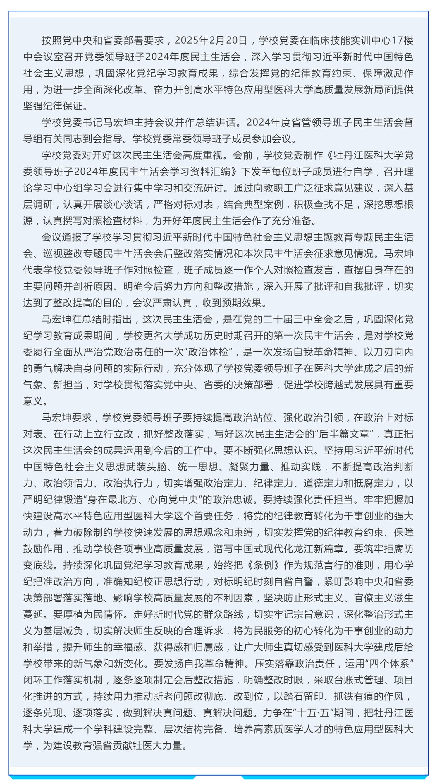 学校党委领导班子召开2024年度民主生活会