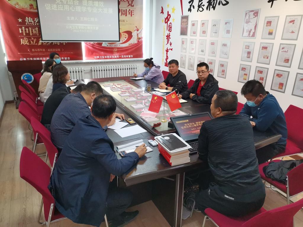 心理党支部于9月22日按照党总支的要求,积极开展能力作风建设年系列活动。本次活动是领导干部讲党课。今天,心理党支部特别邀请了公共卫生学院党总支副书记、院长王和仁同志为我们开展了一次特殊党课。本次党课标题为《党专结合 提质增效 促进应用心理学专业大发展》,说它是特殊党课,就是因为这次党课真正体现了我院“党专结合”的党建工作模式,主要是针对目前我院应用心理学专业发展存在的问题进行剖析和研讨。