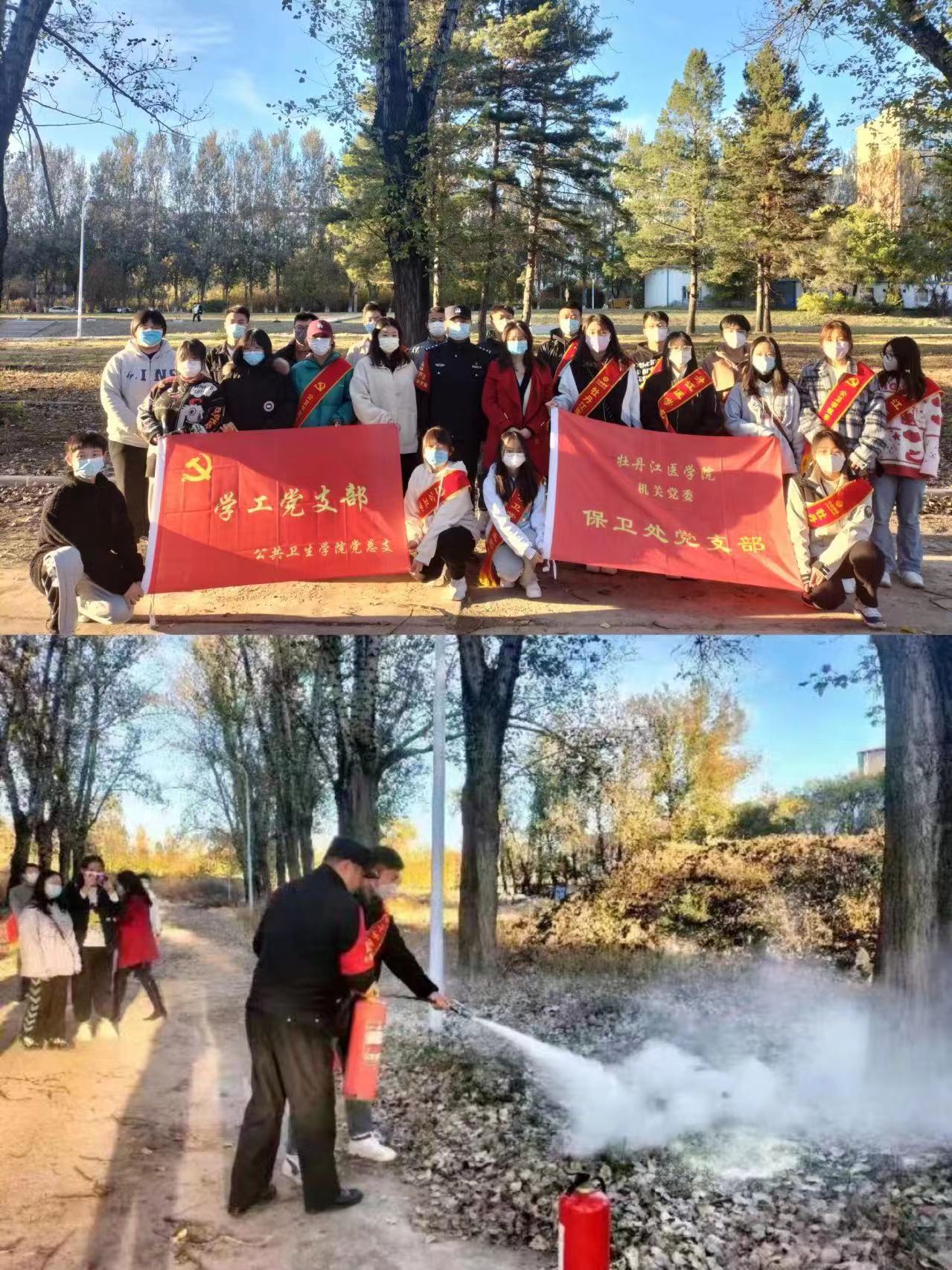 为进一步提升广大学生消防意识,普及消防安全常识,营造良好的消防安全环境,为平安校园贡献红色力量,2022年10月12日,牡丹江医学院公共卫生学院学工党支部联合保卫处党支部在行政楼东侧开展秋季消防安全演练,公共卫生学院党总支学工党支部联合保卫处党支部为公共卫生学院各寝室长、学生党员、团员青年上了一堂生动的消防安全主题的党日活动。