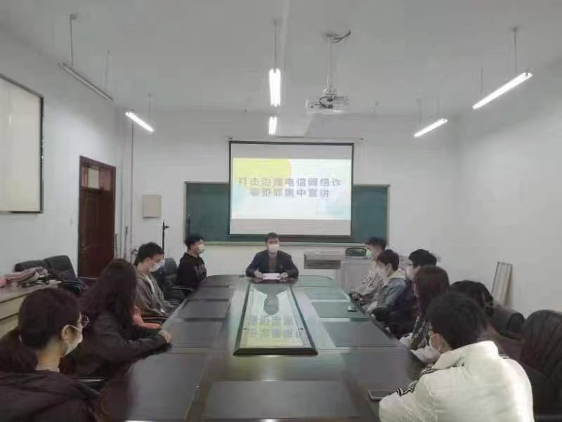 近年来,高校电信网络诈骗案件屡见不鲜,已经严重侵害了高校师生的财产安全,此次活动采用“线上+线下”混合模式进行,线上采用直播形式面向全院同学进行防范电信网络诈骗宣讲,线下面对面形式组织各班宣传委员开展了专题学习会,会后再由各班级宣传委员把主要内容和会议精神传达给各班级同学。