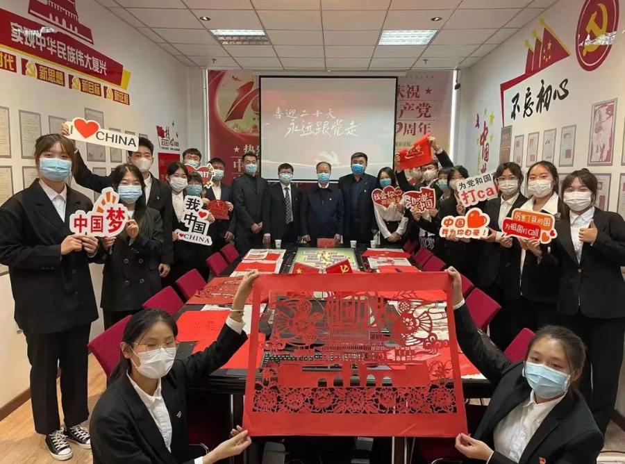 开展丰富多彩的党支部活动。学工党支部开展“一方红纸寄党情”主题党日活动,以中华传统文化为依托,本次活动邀请到了学校党委书记马宏坤,马宏坤书记同全体支部党员一道进行了剪纸创作,将祖国的模样、天安门的庄严、红旗的飘扬刻在了红纸上,现场反响热烈,将迎接党的二十大胜利召开的氛围推向了高潮。学工党支部制造“红色浪漫”,悬挂党旗、红旗,表达全院上下永远跟党走的坚定决心。
