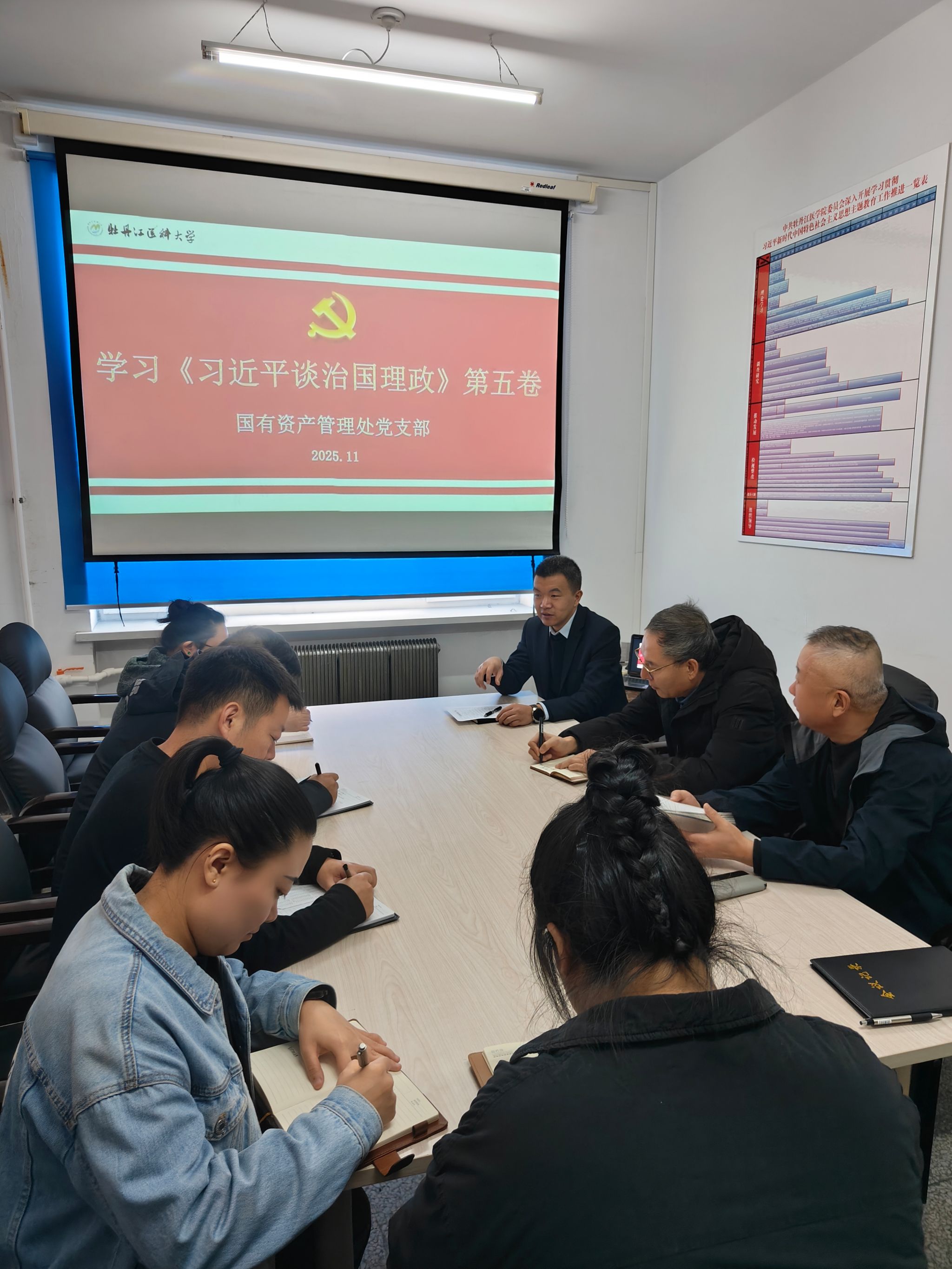 11月26日,国有资产管理处党支部在会议室举办《习近平谈治国理政》第五卷专题党课培训,党支部书记王廷华主讲,支部全体党员参加了此次培训。