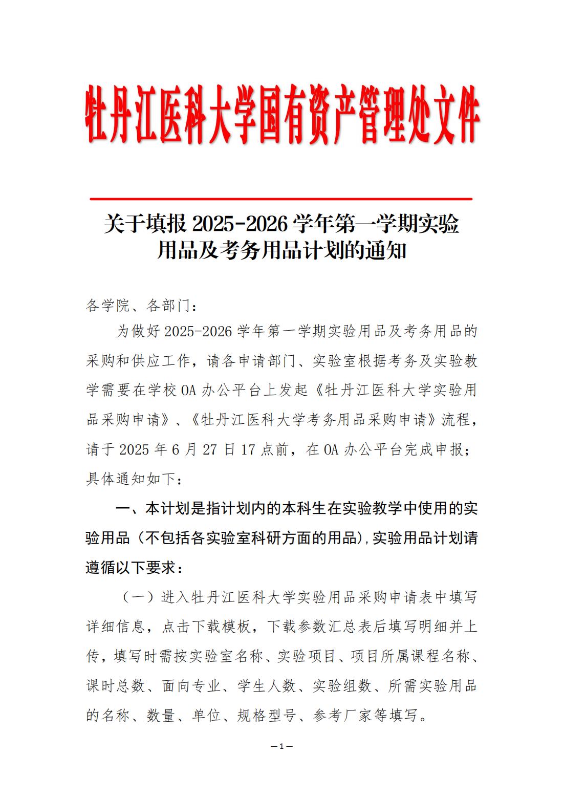 关于填报2025-2026学年第一学期实验用品及考务用品计划的通知