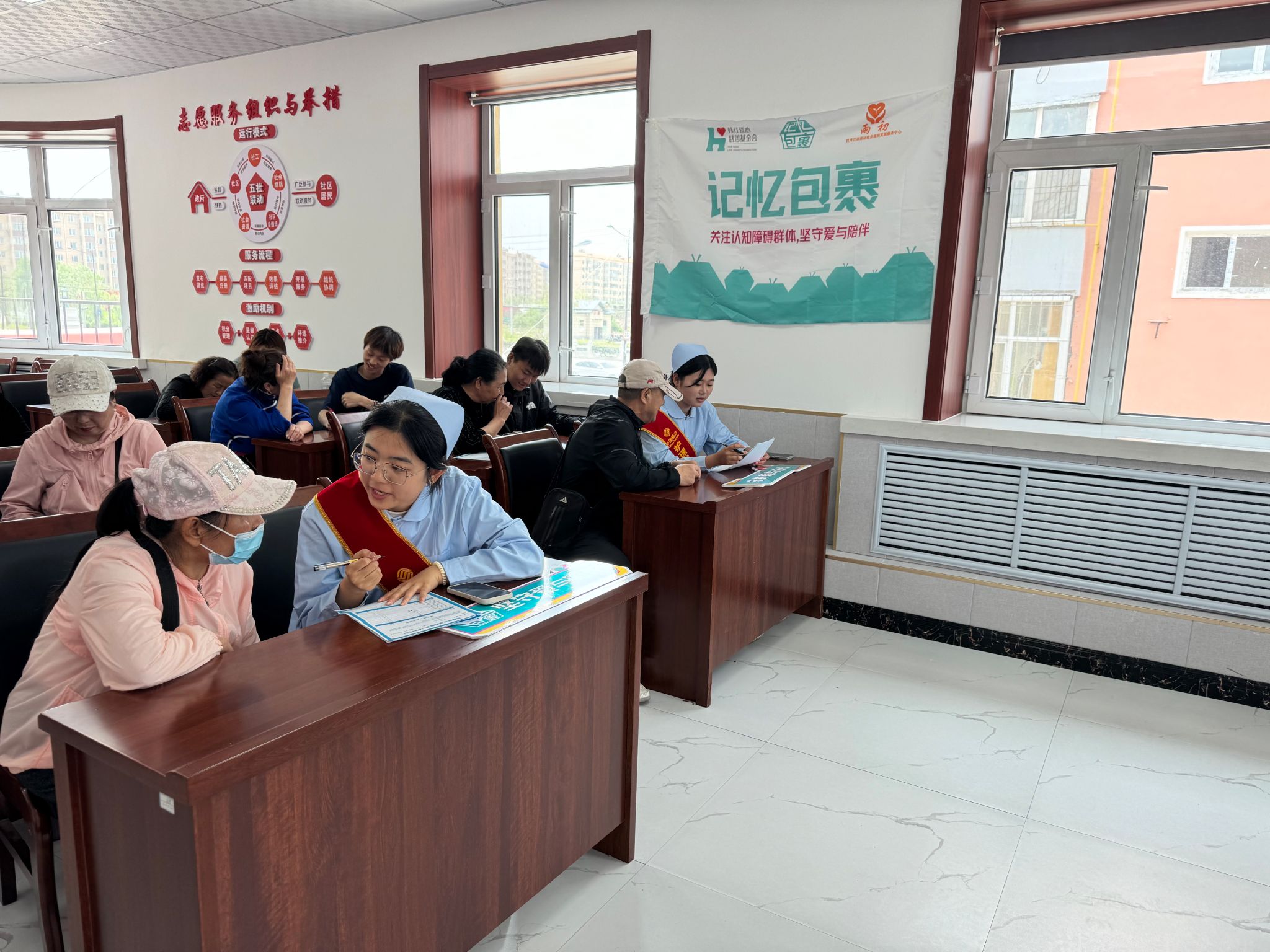 启动仪式中,范容羽代表大学生志愿者进行发言,作为护理专业的大学生志愿者,本着弘扬奉献、友爱、互助、进步的志愿精神,努力把志愿服务与护理专业知识和技能相结合,开展专业化志愿服务,为改善认知障碍老人生活贡献力量。随后,志愿者同学们参加了如何为老年人群体开展科普阿尔茨海默病相关知识的培训,培训中,来自红旗医院神经内科赵维纳主任讲解了认知障碍的相关知识,包括症状表现、如何进行认知障碍测试等,志愿者们认真聆听、仔细记录。紧接着,志愿者们开始为社区老人们进行认知障碍测试。在测试过程中,她们不仅关注测试结果,更注重老人们的感受和情绪,给予他们充分的关怀和安慰。下一步,护理学院“初心”志愿者将继续联合爱民区兴平街道居家养老服务中心,为爱民区社区老人进行认知障碍的筛查,鼓励更多的志愿者加入进来,同时为在爱民区兴平街道居家养老服务中心内设立“防走失小屋”提供志愿服务。