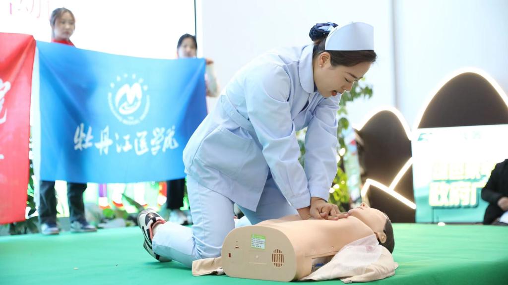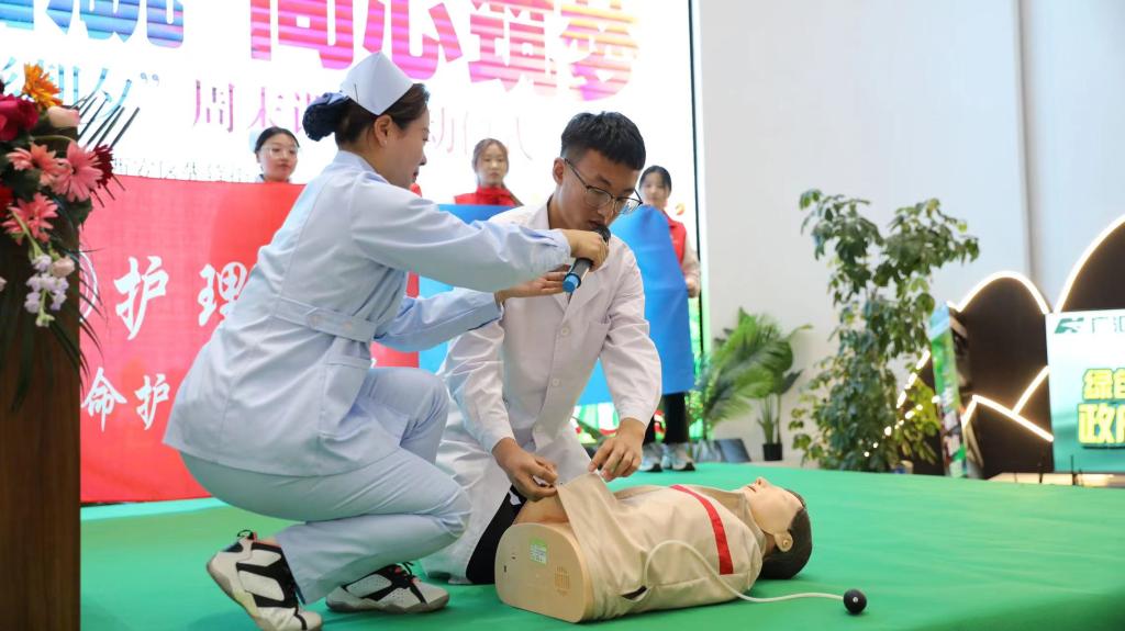 2024年5月31日,护理学院“生命护航公益行”专业化志愿服务团队为西安区先锋街道西三社区工作人员开展“心肺复苏”急救技术培训。