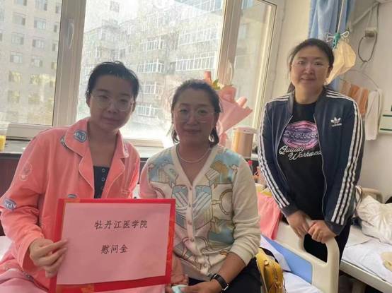 2023年5月29日,护理学院实习就业科科长曹文超、团委书记孟晨受校团委、校友办、护理学院委托代表学校到黑龙江省中医药大学附属第二医院探望援疆患病校友台香凝,将母校的关怀和慰问金送至病床前,并祝其早日康复。