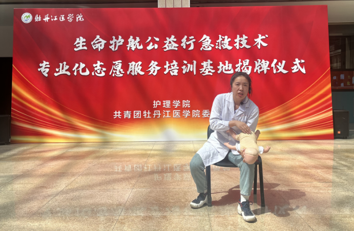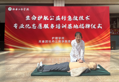 2023年4月27日,由牡丹江医学院团委、护理学院共建的“生命护航公益行急救技术专业化志愿服务培训基地”在图书馆阳关大厅举行揭牌仪式活动。牡丹江医学院团委书记王新同志、护理学院党总支书记张未来同志、护理学院院长郎玉玲同志、护理学院副处级辅导员张春丽同志、护理学院分团委书记孟晨同志出席了本次活动;特邀护理学院教研科副科长高鸾同志、护理实验教学中心教师杜晶晶同志作为急救技术主讲嘉宾出席活动;卫生管理学院、公共卫生学院、护理学院大学生志愿者代表参加了本次活动。
