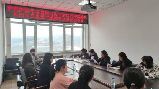 2023年4月18日上午,护理学院组织召开学习贯彻习近平新时代中国特色社会主义思想主题教育动员部署会议,会议由党总支书记张未来主持,学院领导班子成员及全体教师参加会议。
