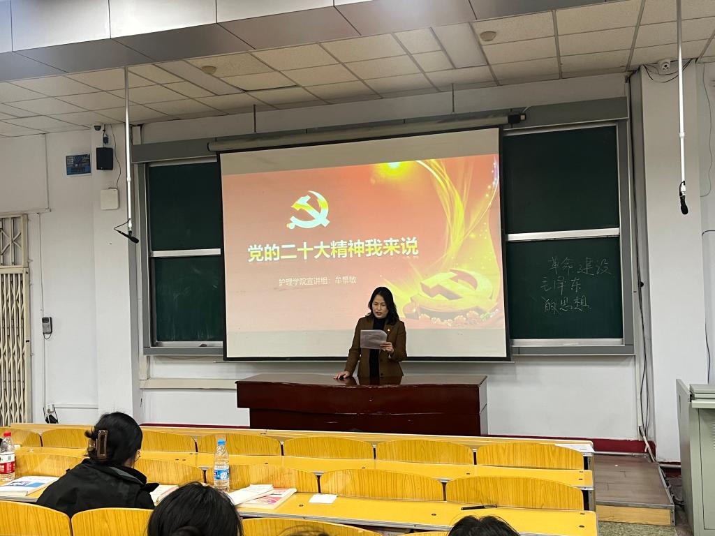 自党的二十大召开以来,护理学院党总支开展了多种形式的分层次全覆盖的党的二十大精神学习宣传活动,营造人人学,深入学的浓厚氛围。