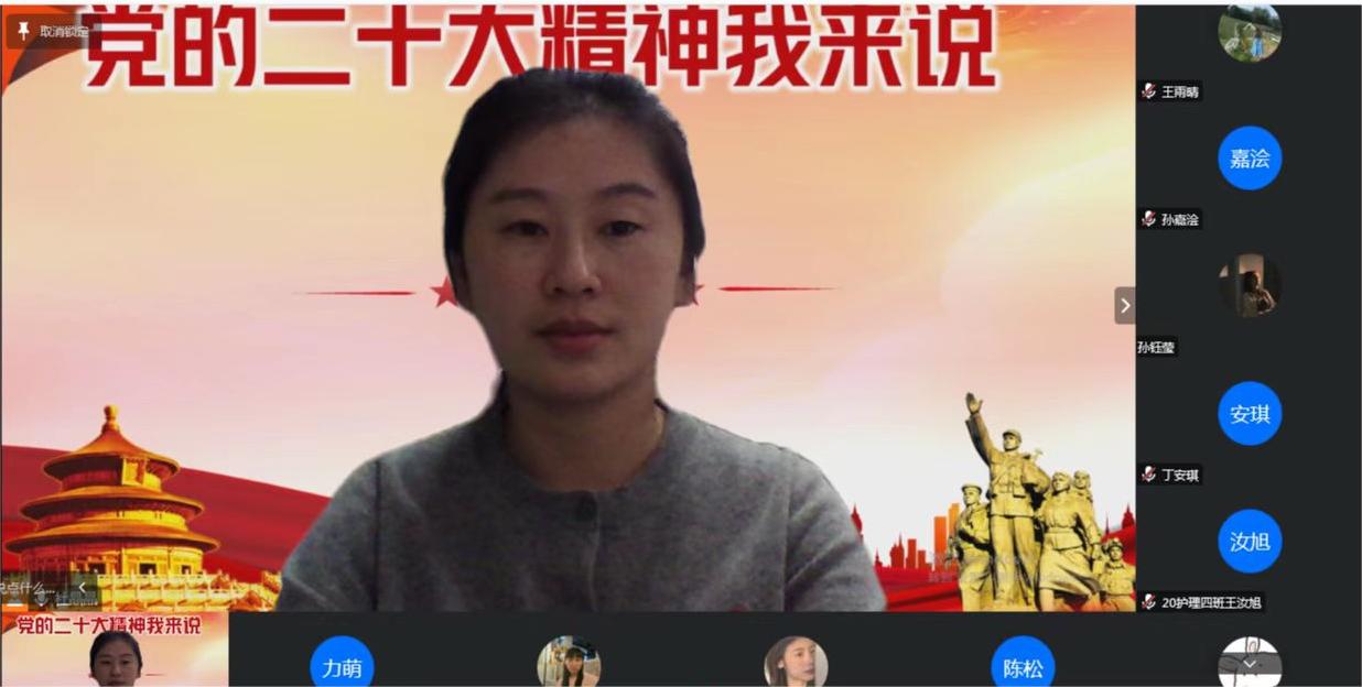 2023年3月6日-10日,护理学院宣讲小分队成员发挥表率作用,通过“党的二十大精神我来说”活动,面向基层深入班级,开展面对面、互动化宣讲。即全面系统介绍大会基本精神、基本内容,又抓住重点方面、关键问题集中阐释,以实际行动带动广大干部师生学习宣传贯彻党的二十大精神。学院累计开展宣讲会10余次,覆盖全体师生547人。