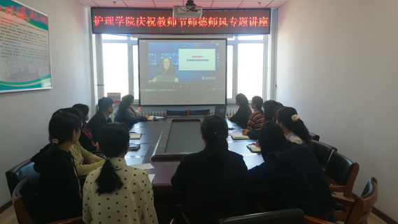 为庆祝第38个教师节的来临,按照学校“关于举办教师节座谈会等庆祝活动的通知”要求,围绕“迎接党的二十大,培根铸魂育新人”主题,护理学院于9月8日组织全体教职工在实训中心1422会议室以线上线下融合的方式,开展了题为《新时代背景下高校教师师德师风建设的新征程》的师德师风专题培训。