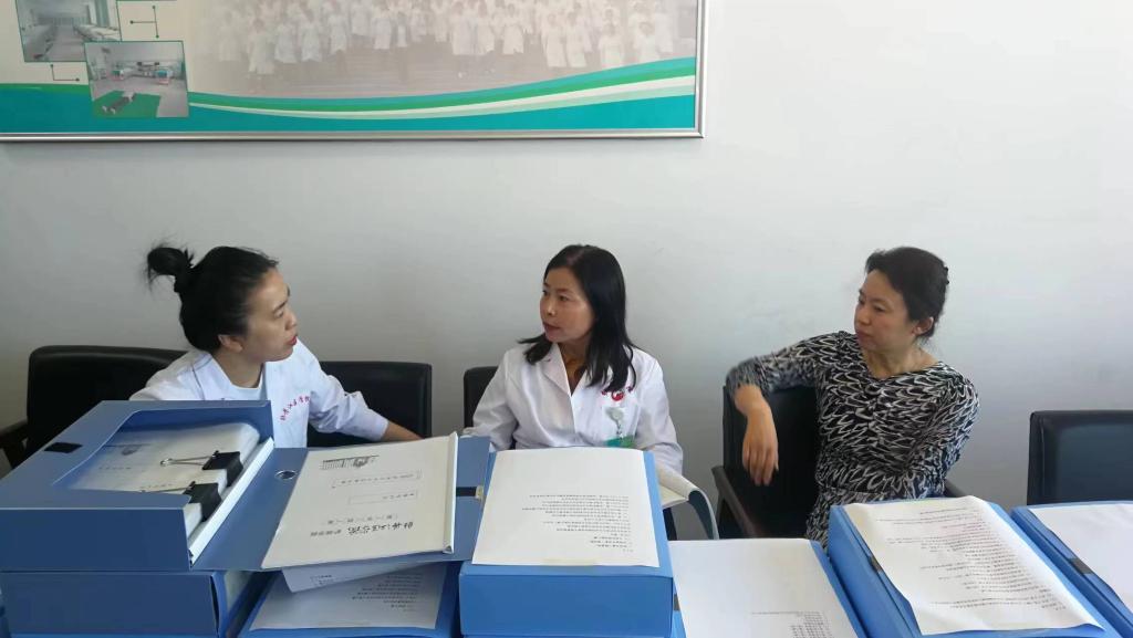 本次自查分为两层面进行:护理学院院长郎玉玲、护理学院党总支书记张未来对教务科层面的存档材料进行检查;护理学院教学副院长牟景敏带领各教研室主任、秘书分为5组,对教研室、技能中心,存档材料进行细致检查。