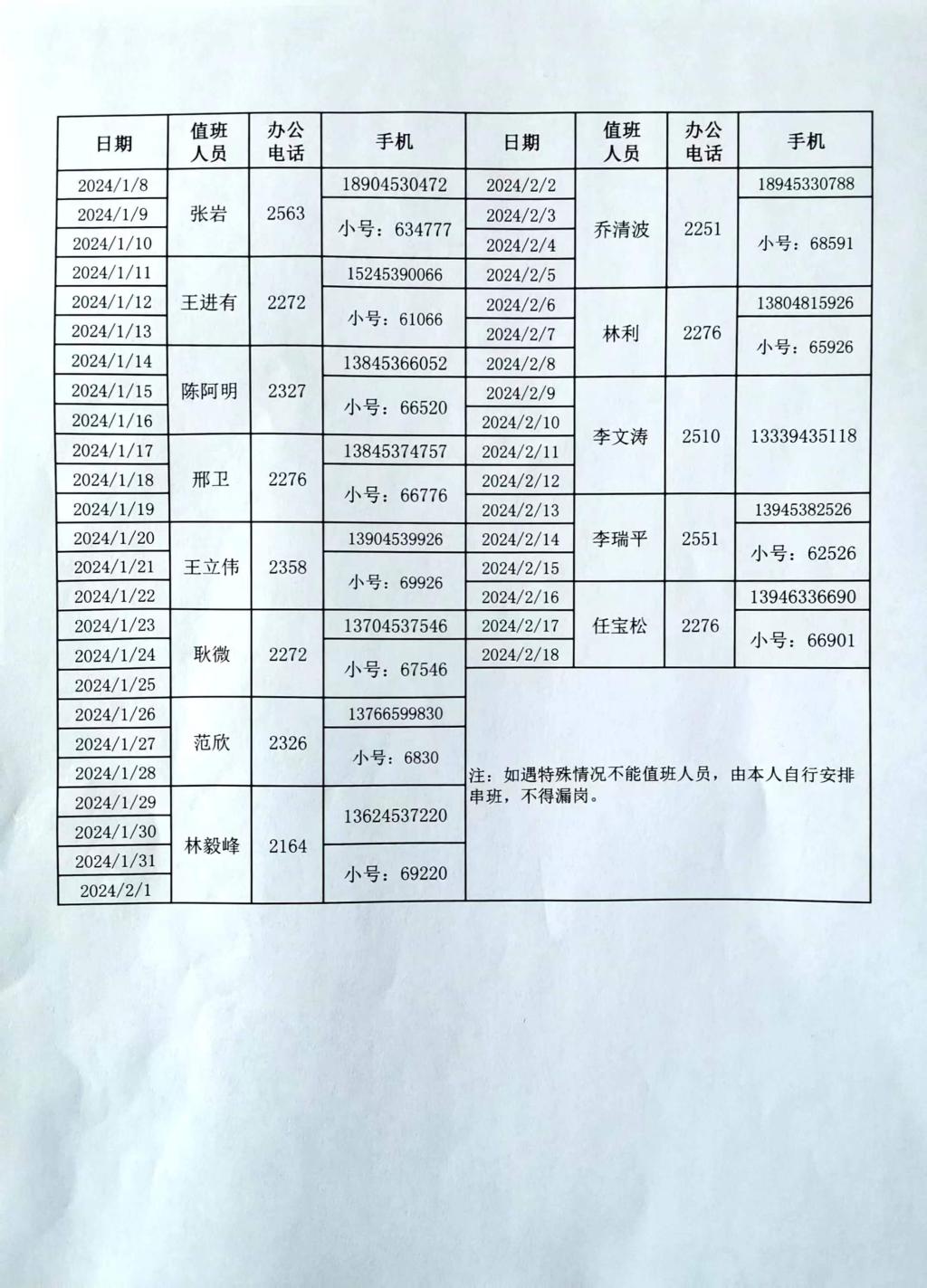 附:2024年寒假后勤管理处值班表