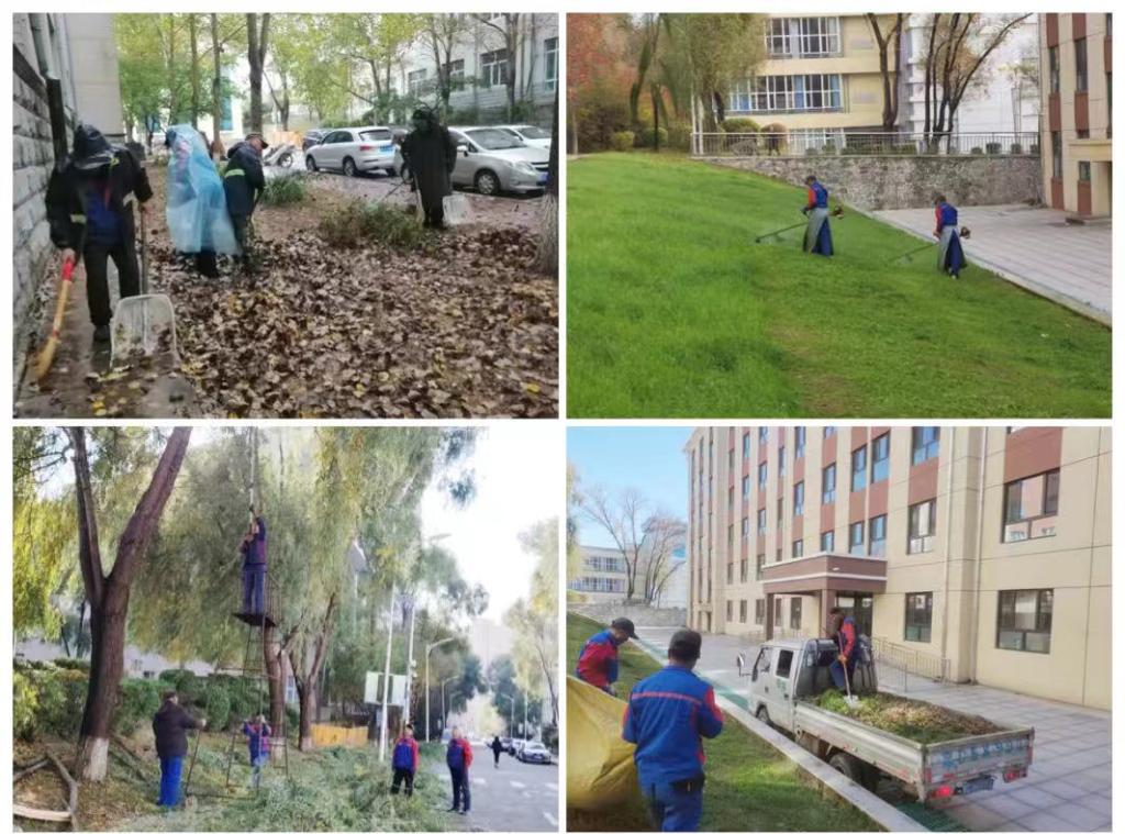秋季落叶量大,按区域逐步推进枯枝落叶清扫,争取在降雪前完成整个校区。并不间断对校内植物开展精细养护,按时浇水、修剪草坪。正值校园“空窗期,绿化人员紧抓时间节点,进行树木修剪。此次修剪工作针对过度繁茂枝条、易折干枯枝的行道树进行及时处理,着重校园环境安全。