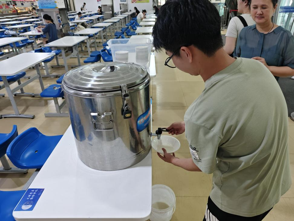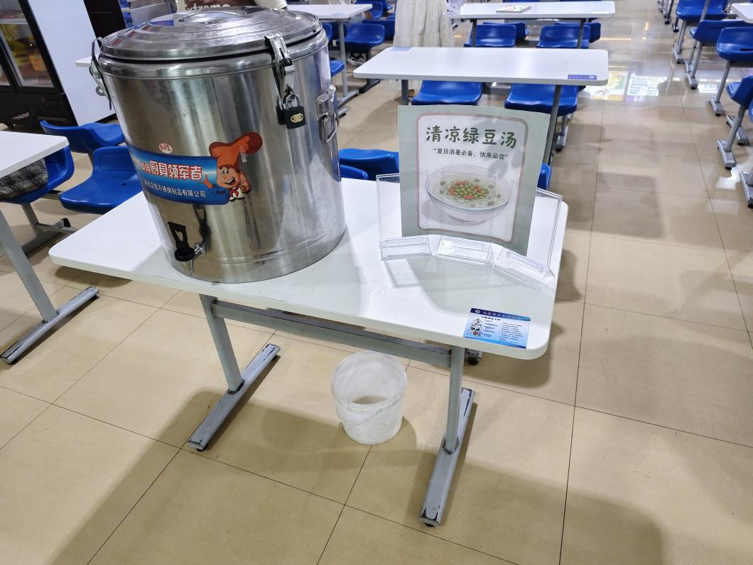餐饮中心工作人员每日清晨便开始熬制,确保供应充足、口感清爽。小小一碗绿豆汤,不仅为师生送去了清凉,更传递了校园里一份实实在在的关怀,让师生在炎炎夏日中感受丝丝甜意与浓浓温情。