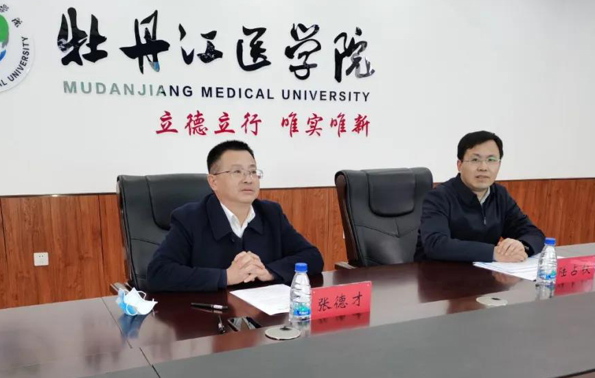 学校领导班子成员,现职正处级干部,机关、后勤及两所附属医院现职副处级干部共计100人参加线上视频会议。