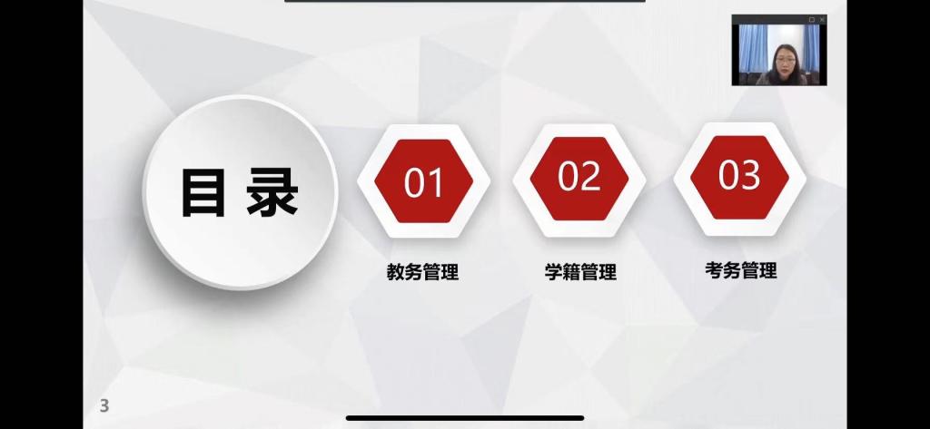 王晓东以《规范管理,精致服务,提升水平——教学管理规章制度解读》为题,重点对教学管理规章制度、本科专业培养方案和本科专业教学大纲进行了详细解读。她强调教学工作是学校的中心工作,教学管理是学校管理工作的核心,完善的教学管理规章制度和严格的教学管理措施是提高教育教学质量和人才培养质量的必要前提和重要保障。她指出,辅导员老师和班主任老师都是学校教师队伍的重要组成部分,是学生工作的骨干力量,二者应积极配合,共同促进学生发展。