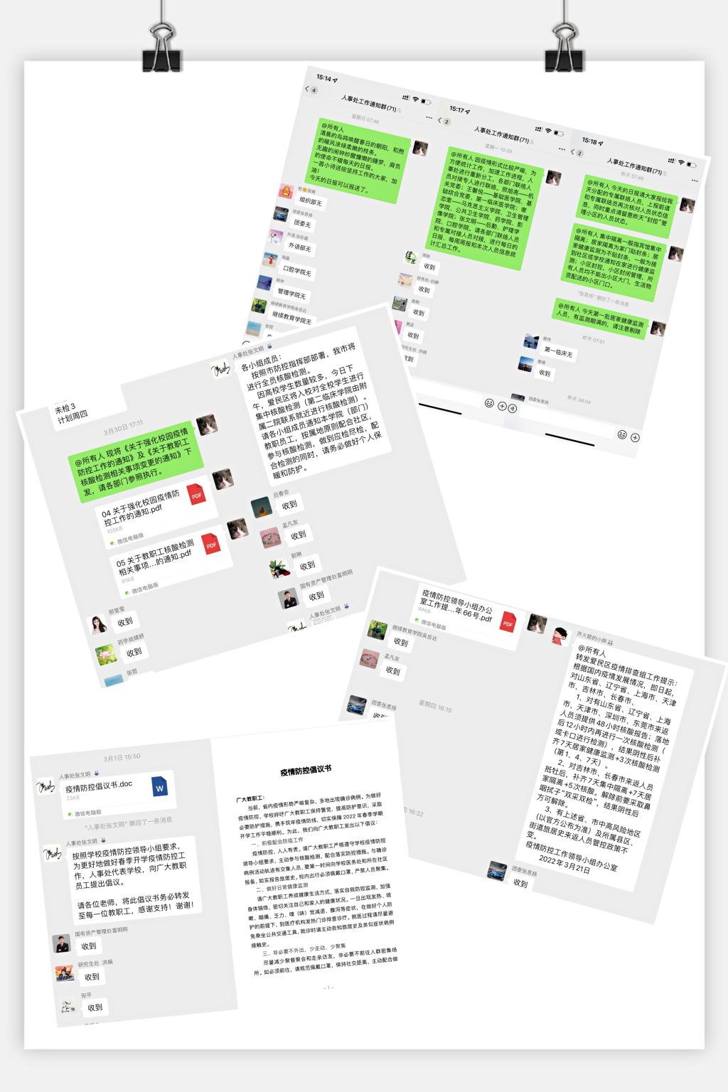 随着疫情发展,人事处与各部门主管领导、联络人员一起构建“学校—部门—教职工”三级疫情预防控制体系,确保疫情防控信息渠道畅通,点面覆盖。精益求精是他们的工作态度,看万家灯火盏盏熄灭是他们的工作常态,守着电话,盯着电脑,在平凡的岗位诠释不平凡的坚守,用自己默默无闻的力量搭建教职工疫情防控“数据”网。