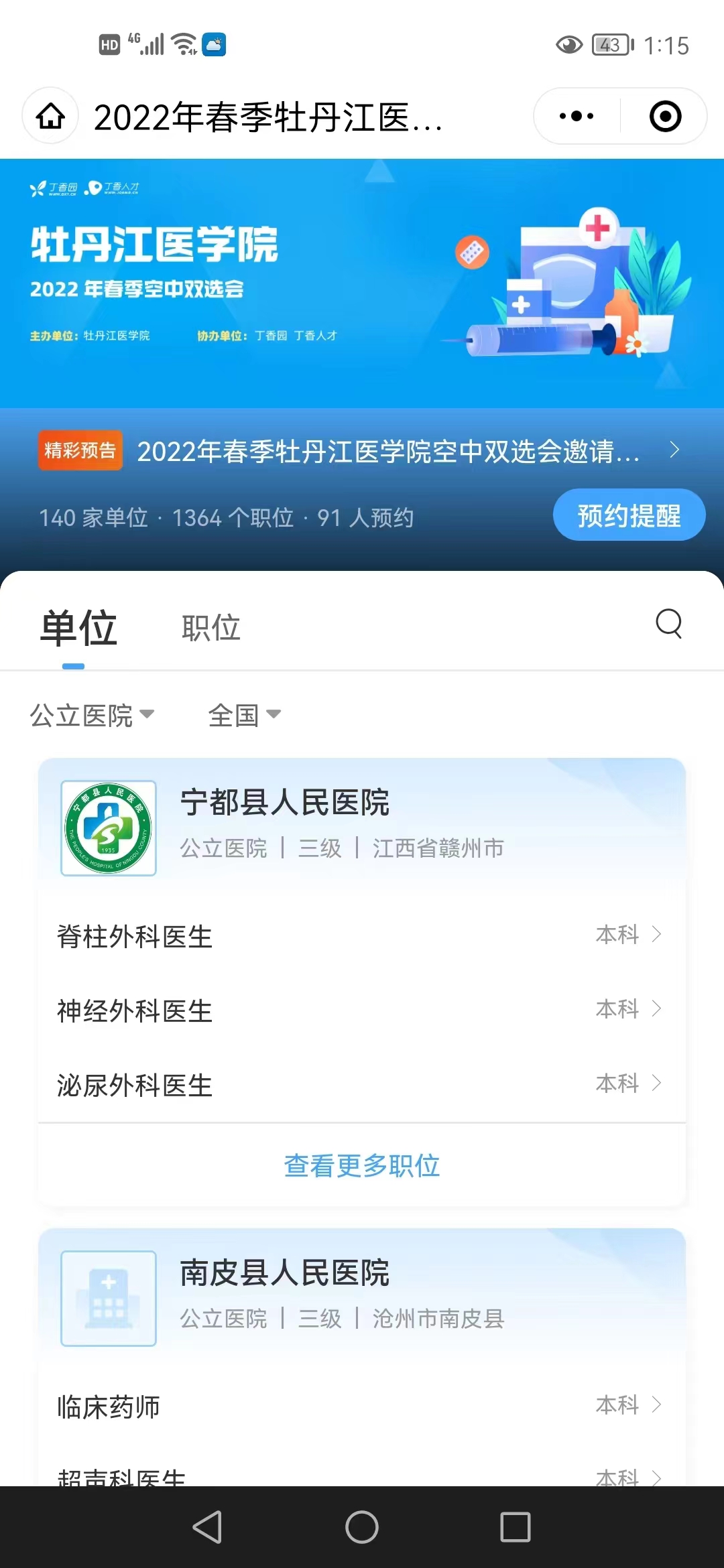 主动出击拓岗位:招生就业处主动对接牡丹江市卫健委,了解我市卫生系统人才需求情况,与市委组织部人才科联系,掌握我市卫生系统人才岗位设定情况;与牡丹江市各医疗单位进行沟通联系,为留牡就业创造更多机会;开展湖州市生物医药牡丹江医学院专场云聘会、诺唯赞、中国平安与牡丹江泰瑞商贸有限公司等校园招聘。