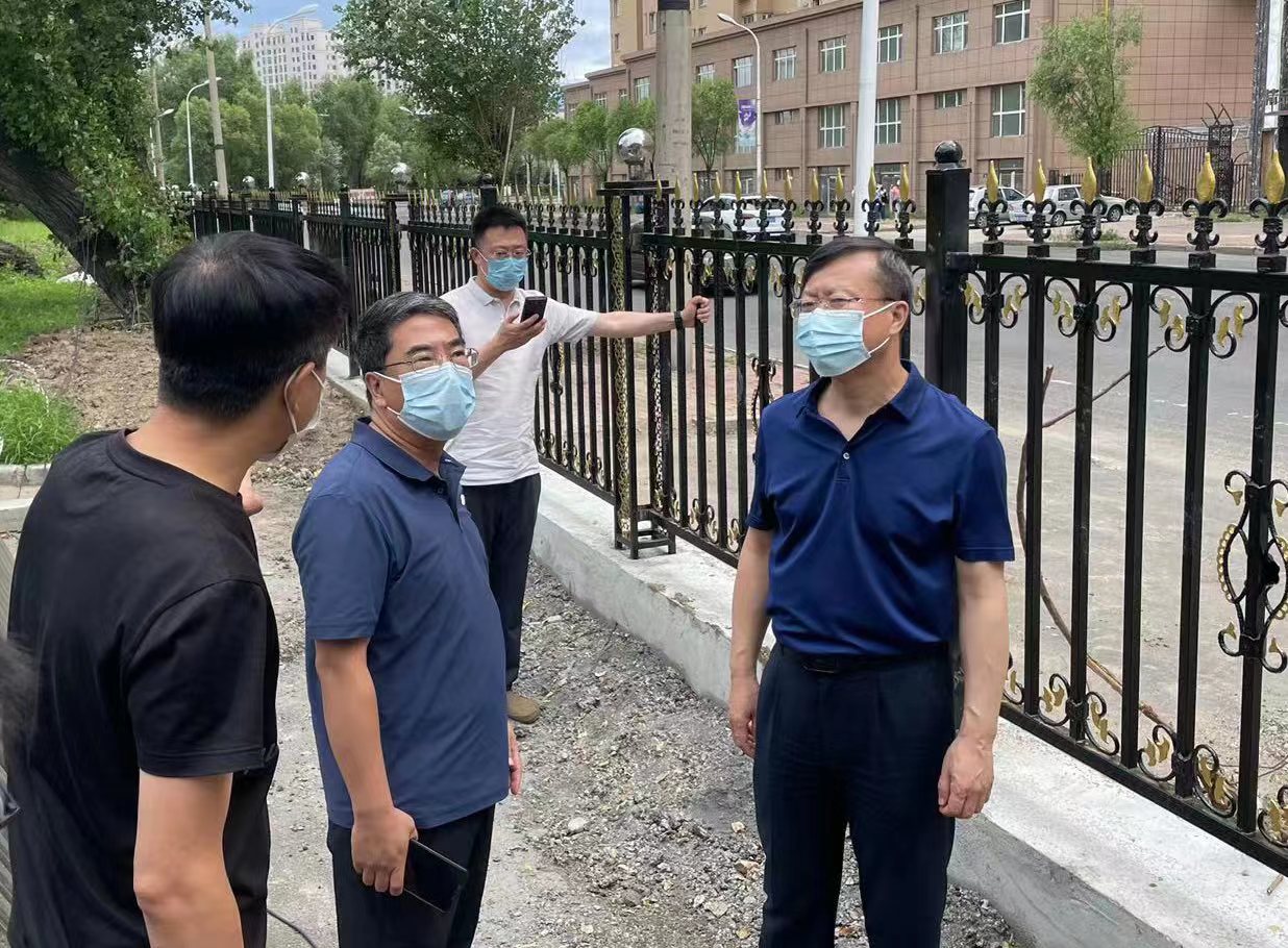 7月22日中午,校长朱晓峰在校办公室、审计处、后勤管理处负责同志的陪同下,深入我校红旗医院办公楼外墙保温工程、新建学生宿舍楼工程、药学楼卫生间改造工程、学校铁艺围栏工程的施工现场检查指导工作,并就后续相关工作进行了安排部署。
