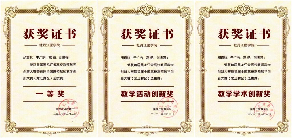 为加强学校教师队伍建设,鼓励教师提升教学能力和业务水平,调动和激励教师的工作热情和创新精神,培养教师爱岗敬业、严谨治学的态度,进一步激发广大教师更新教育理念和掌握现代教学方法的热情,努力造就一支师德高尚、业务精湛、充满活力的专业化教师队伍,推动我校教学水平的进一步提升,学校连续举办五届青年教师教学竞赛、两届教师教学创新大赛、四届微课教学比赛、四届青年教师多媒体课件制作大赛,共286名教师参赛,其中56名教师在省级以上赛事中获奖,其中胡嘉航老师在2021年举行的黑龙江省首届高校教师教学创新大赛中荣获副高组一等奖、教学活动创新奖和教学学术创新奖。
