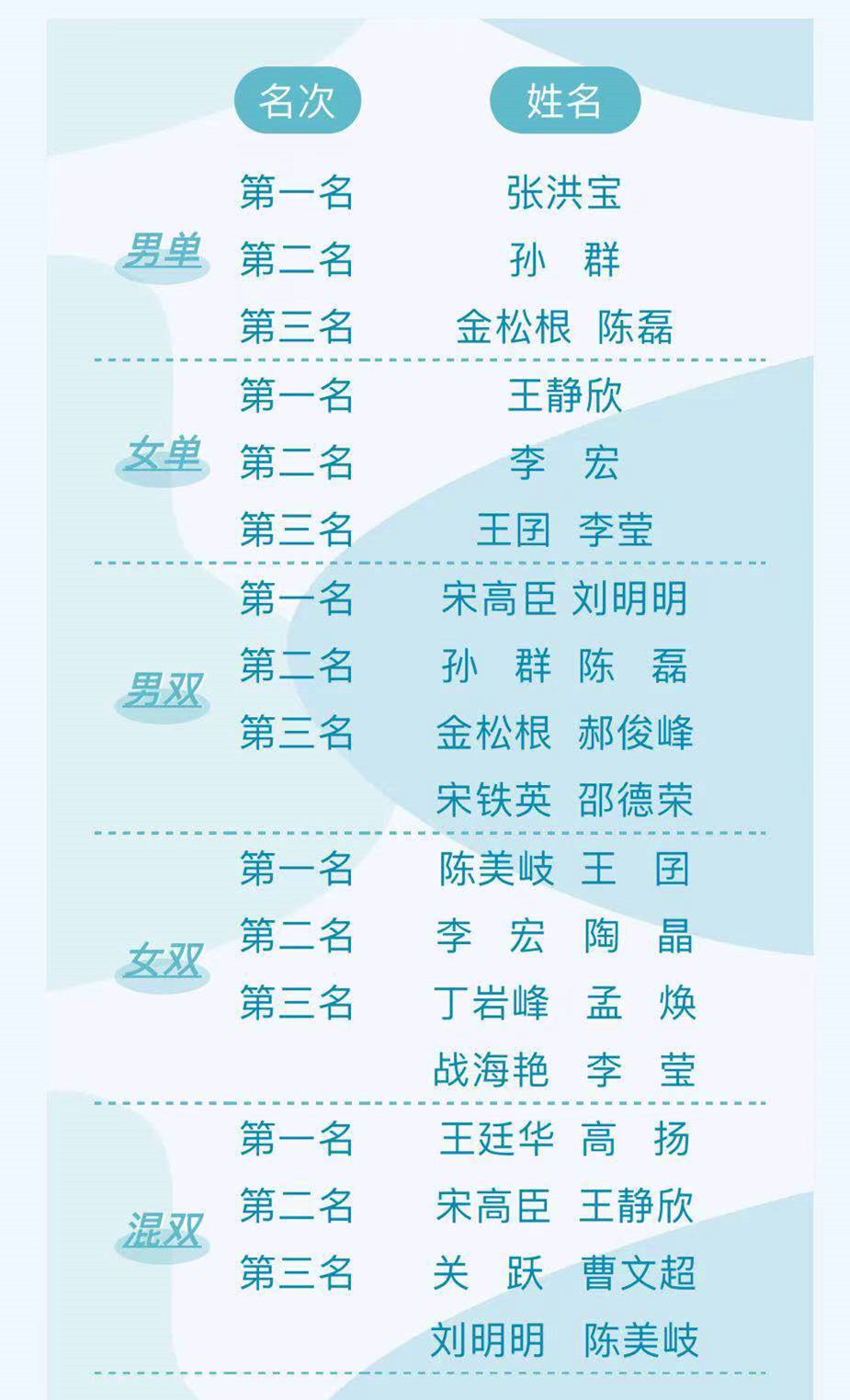 经过2天的激烈角逐,各项目比赛成绩如下: