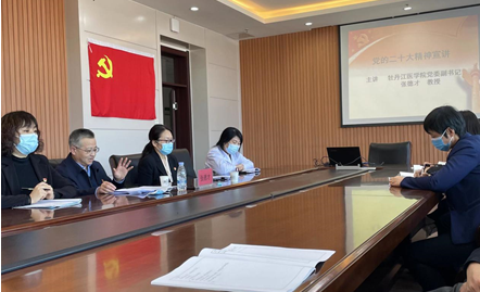 宣讲结束后,姚黎英代表马克思主义学院直属党支部和学院全体教师表示,马克思主义学院要当好理论宣传的排头兵,在学习宣传党的二十大精神方面,要“一马当先,先行一步”,高质量开好思政课,充分发挥人才优势、智力优势,不辜负学校领导的支持和厚望。在今后的工作中,继续在学校党委的领导下,团结奋进,为我校高质量发展贡献马院力量。