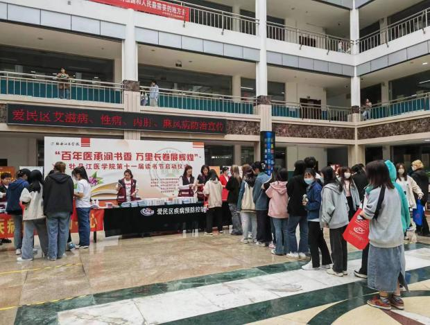 在图书馆一楼阳光大厅,四城区疾病预防控制中心的工作人员,为师生发放艾滋病防治知识手册、艾滋病宣传单共计1000余份。通过此次防治艾滋病系列宣传活动,让参与师生全面了解了艾滋病相关知识,增强了自我防护意识和防护技能。感受到作为有着医学教育背景的牡医学生,肩负的防艾抗艾的社会责任和光荣使命,同学们纷纷表示在今后的日常生活中会积极与同学、家人、朋友分享艾滋病的相关知识,自愿做艾滋病防治知识的传播者,呼吁社会消除歧视和偏见,给予艾滋病感染者理解和关爱,增强他们战胜疾病的信心和勇气,一起携起手来,为防控艾滋病、共建和谐社会做出自己的贡献。