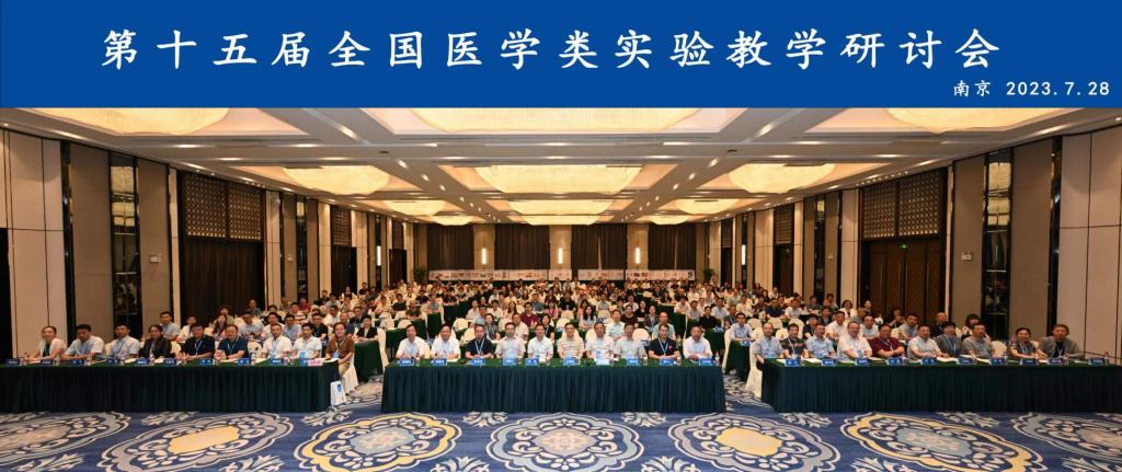 2023年7月27日至29日,第十五届全国医学类实验教学研讨会在南京医科大学召开。来自全国30个省、自治区的100余所高校专家及骨干教师现场参会。本次会议主题是围绕立德树人根本任务,探讨新时代背景下现代信息技术与实验教学深度融合,强化实践创新能力培养,推进示范中心建设的高水平可持续发展。大会设有医学教学高端论坛、联盟论坛、学术、成果展示等多种形式。