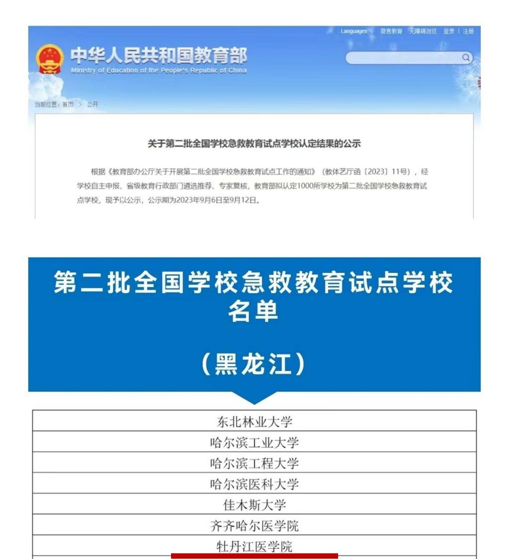 此次“第二批全国学校急救教育试点学校”的成功入选,充分肯定了我校在急救教育工作中所取得的成绩,我校将以此为契机,强化医学院校在社会急救中的示范引领作用,完善应急教育育人体系建设,加强急救教育的宣传、普及、应用和推广,提升社会急救服务水平,为全社会、全局域急救事业高质量发展贡献力量。