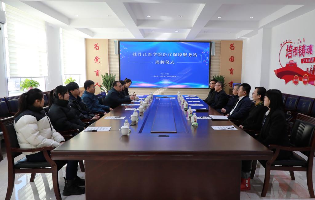 学校党委副书记张德才、学生工作部(处)领导及相关各科室负责人,牡丹江市医疗保障局常务副局长刘昭晖、副局长王文博及相关工作人员出席揭牌仪式。