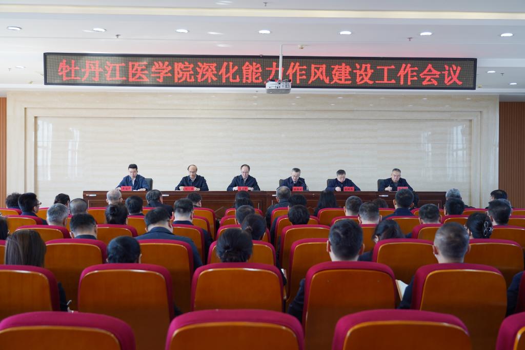 张德才在主持会议时强调,学校各党政部门和广大干部要全面学习、全面把握、全面落实工作会议精神,进一步增强深化能力作风建设的责任感和使命感,持续解放思想、转变观念、提升干事创业精气神和真本领。要提高政治站位,强化工作落实执行力。切实把思想和行动统一到学校党委要求上来,认真学习研究方案,精心组织实施,共同巩固提升风清气正的政治生态。要推动解放思想,抓好重点工作驱动力。切实以思想大解放、工作大落实来推动高质量发展大提升。要注重工作实绩,激发干事创业源动力。压紧压实责任,以实干担当的精神奋勇争先,以“身在最北方、心向党中央”的政治忠诚,秉承牡医精神,奋力开创高质量发展、可持续振兴新局面。